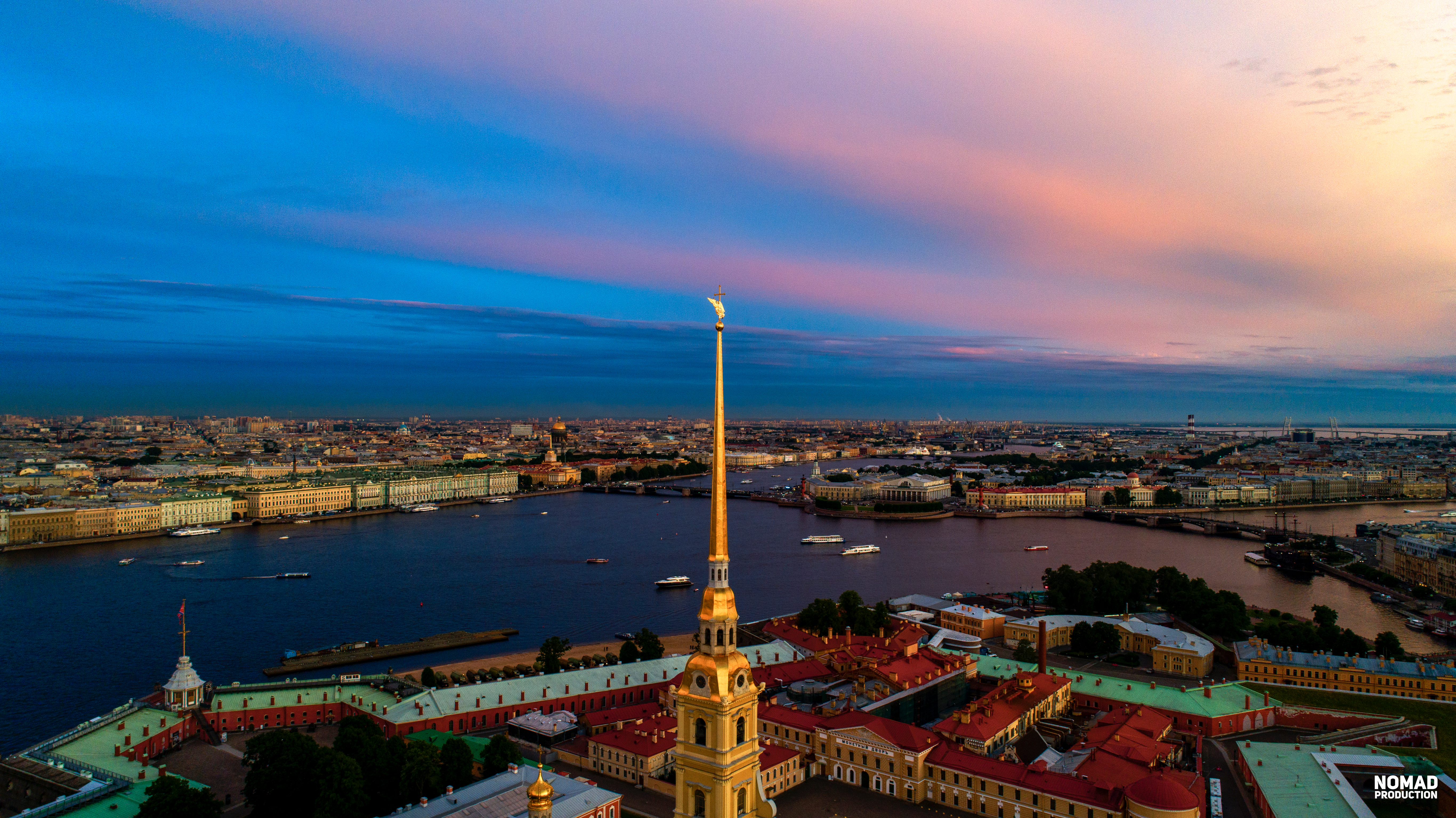 Закат, ангел на шпиле Петропавловской крепости