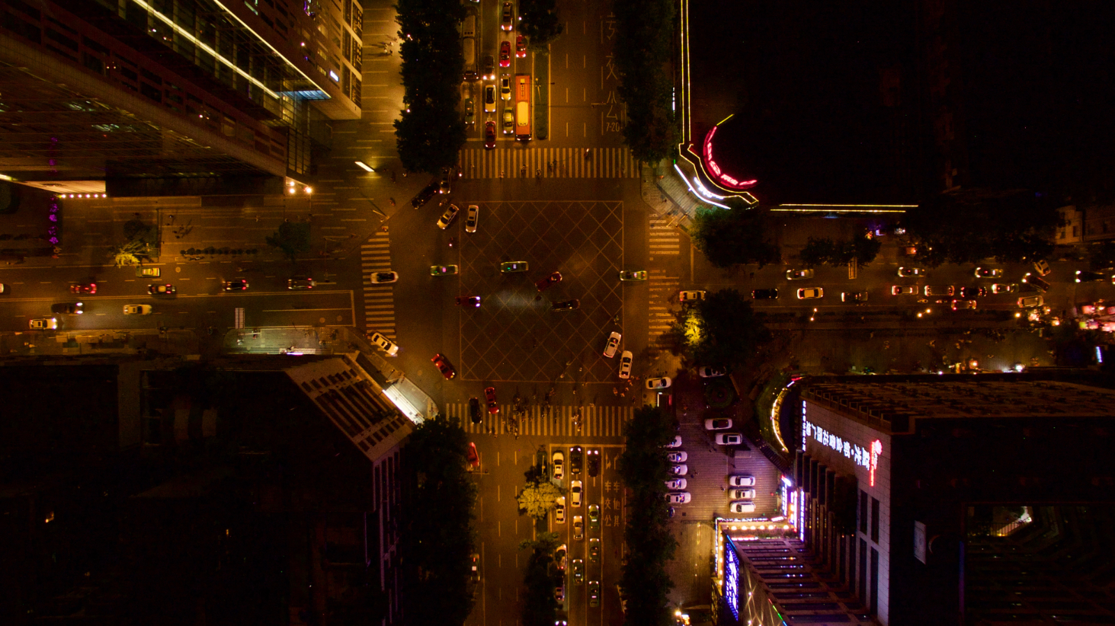Вид на оживленную ночную улицу в Китае