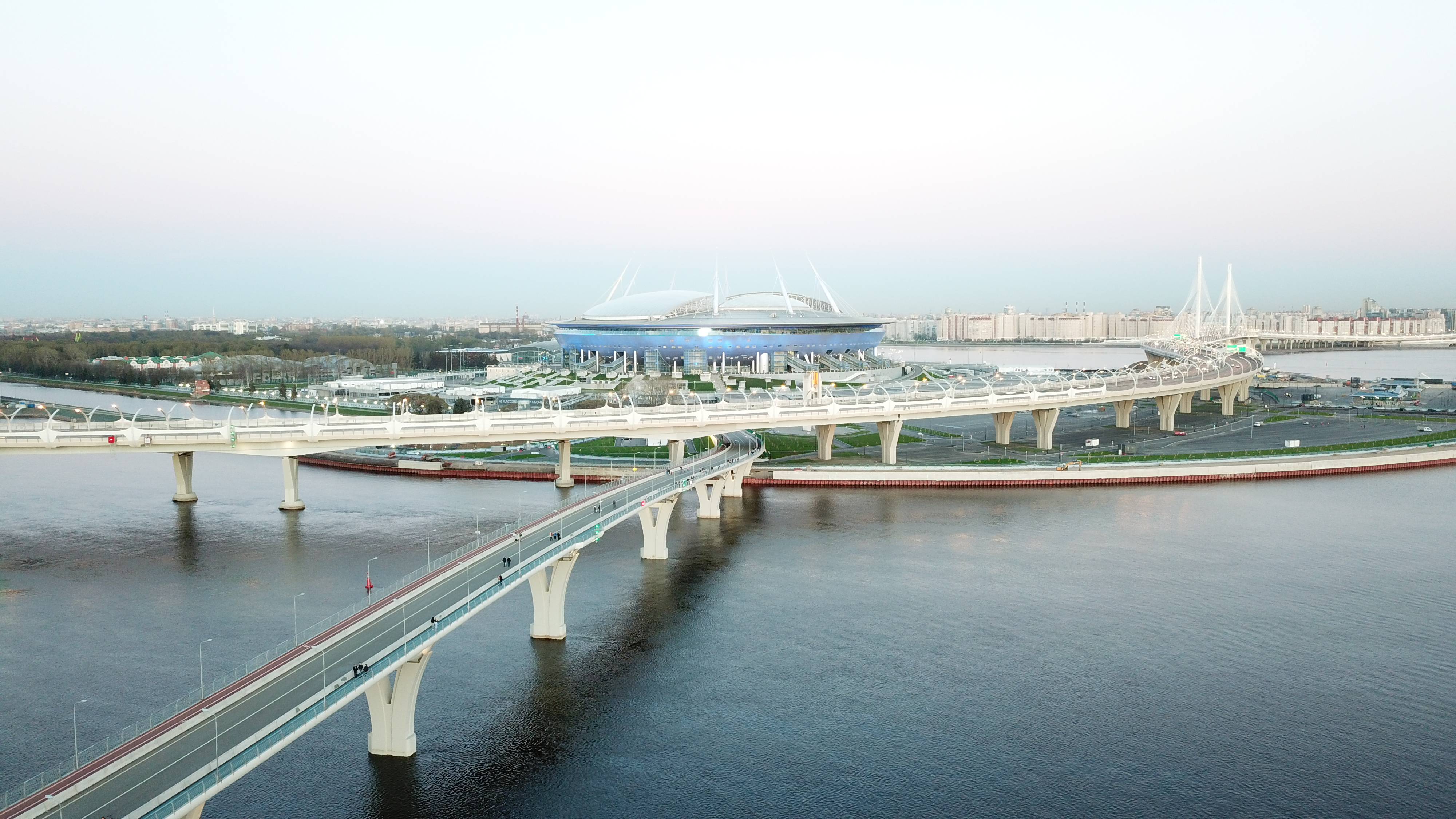 Аэросъемка,пешеходного моста, к стадиону Газпром Арена