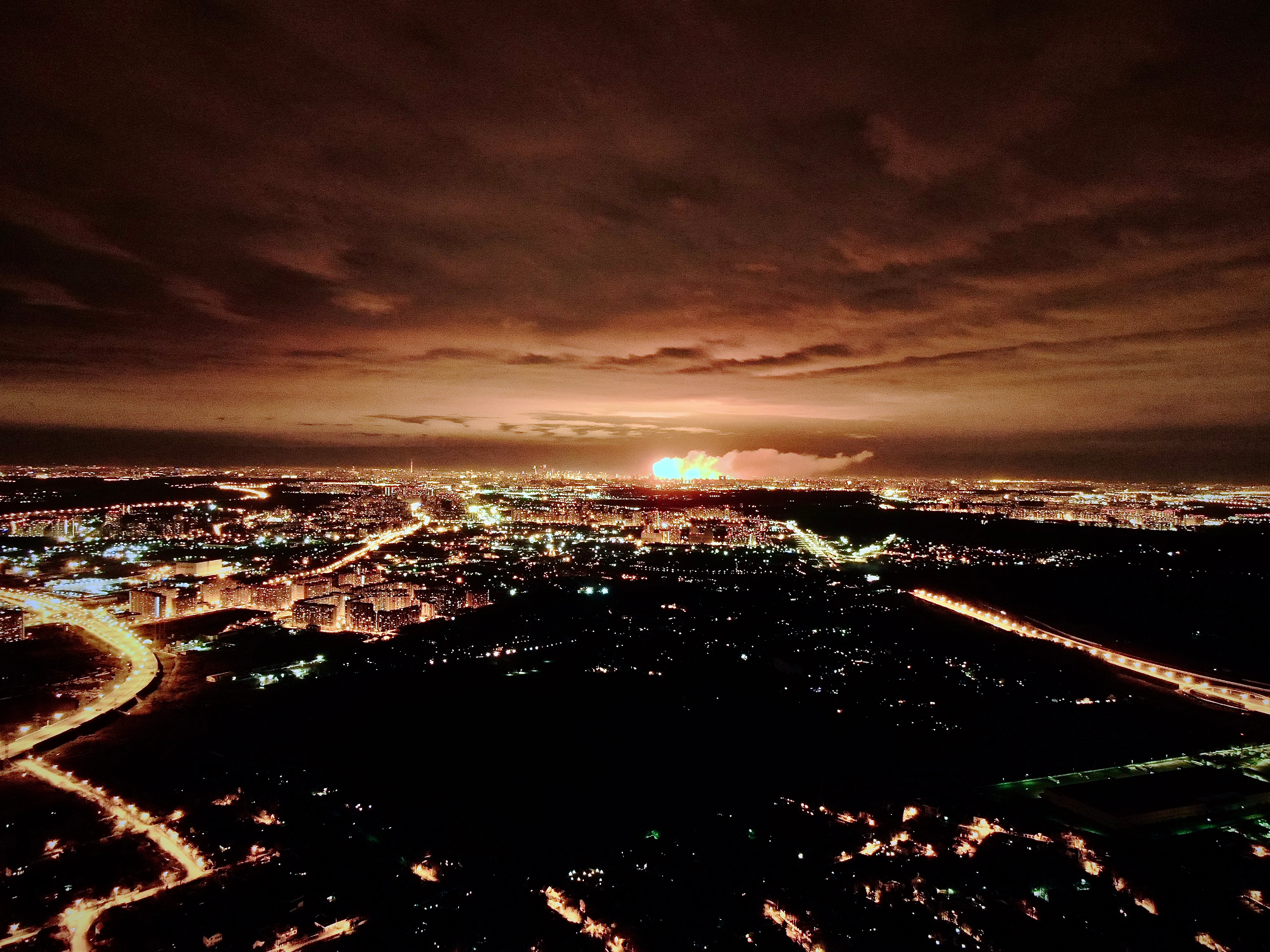 Снял ночной город во время салюта 9 мая 2020 года.