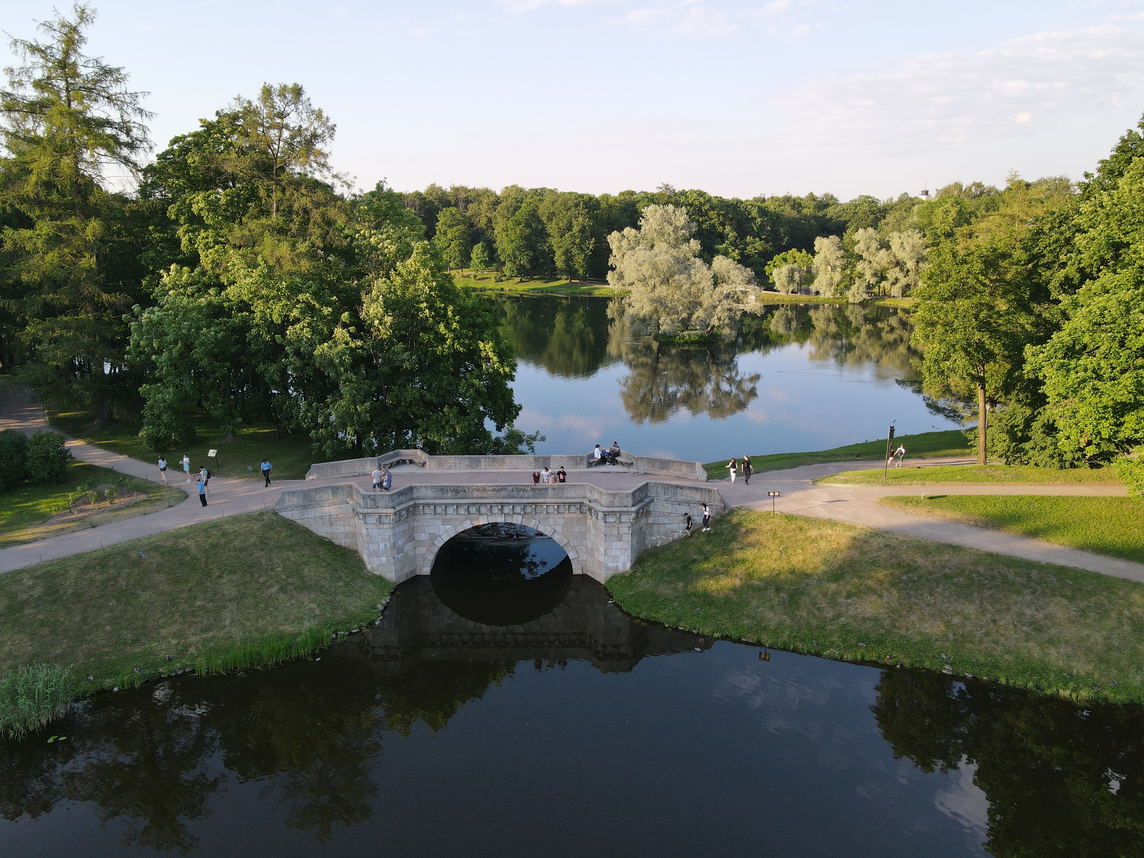 Дворцовый парк в Гатчине. Мост имеет форму крепостного бастиона.