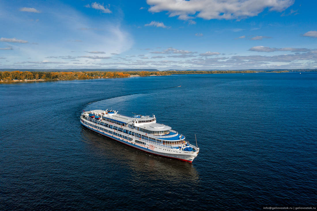 Круизный теплоход на реке Волга