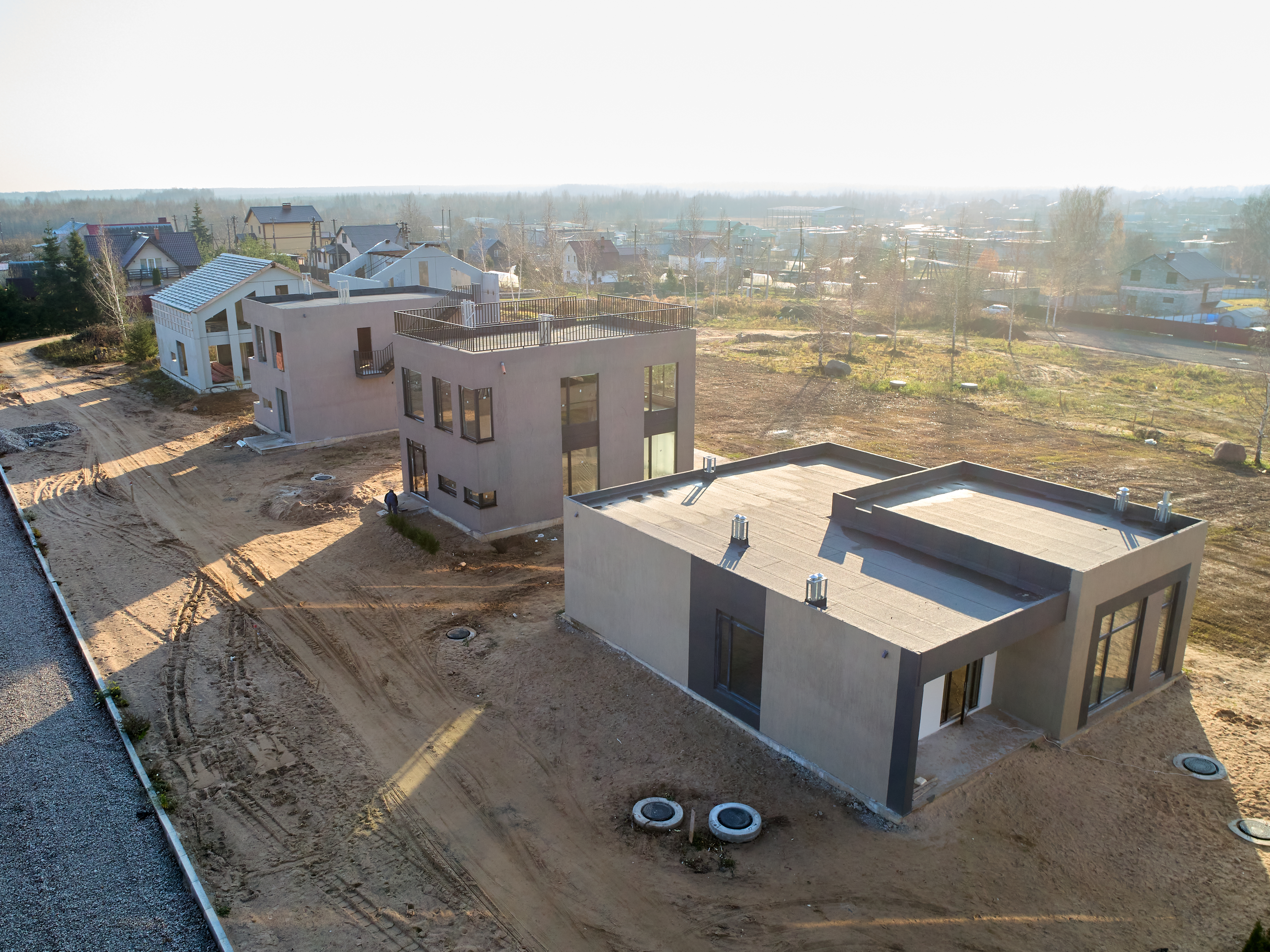 Съемка строящихся коттеджей Sky Garden