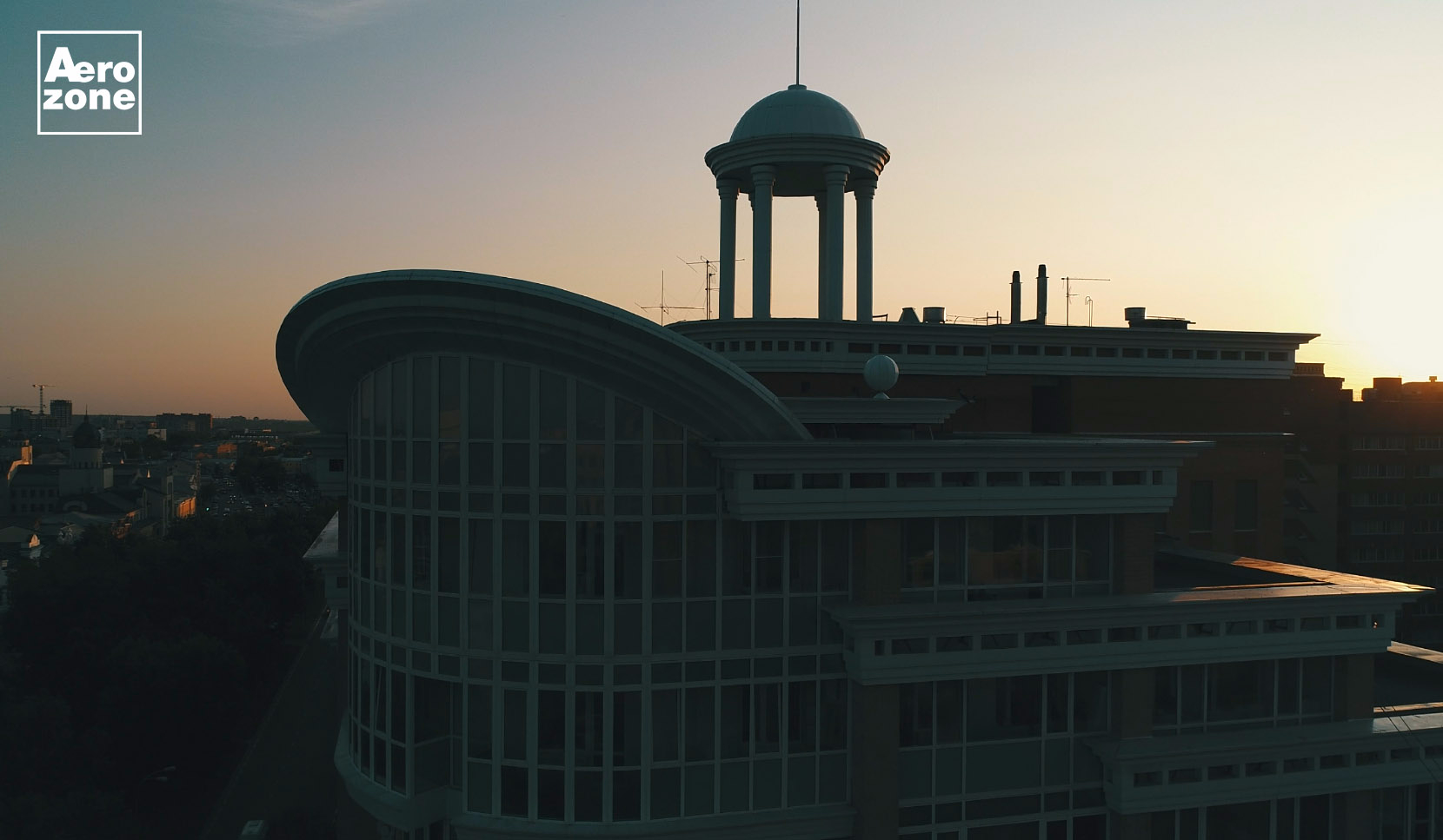 Беседка на крыше на закате.