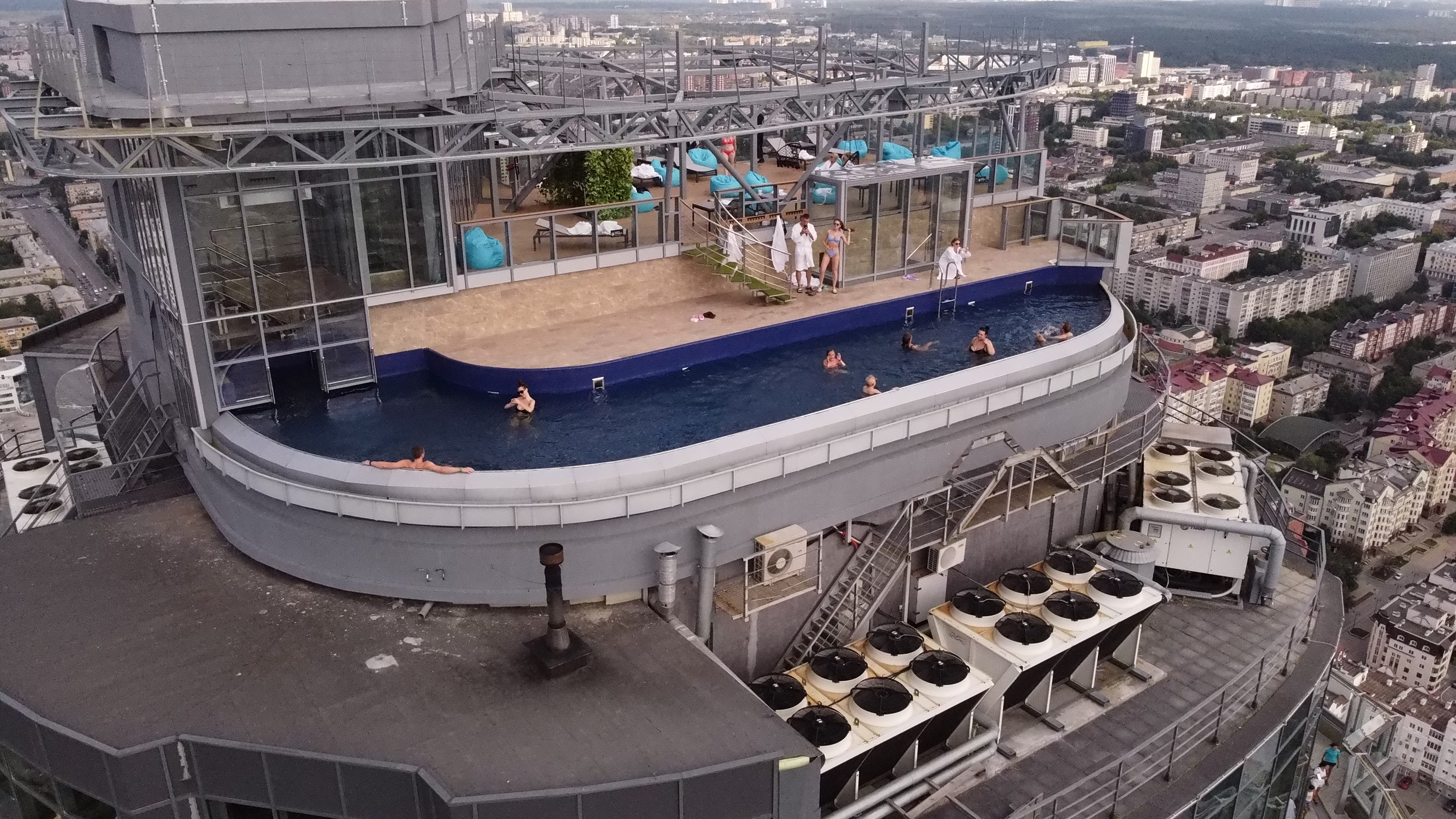 Бассейн на крыше небоскреба «Высоцкий», который с размахом открылся 11 июня вновь привлек к себе внимание. Теперь он попадет в Книгу Рекордов Гиннеса, как самый высокий в Европе. Об этом «КП-Екатеринбург» рассказал бизнесмен и владелец небоскреба «Высоцкий» Андрей Гавриловский.