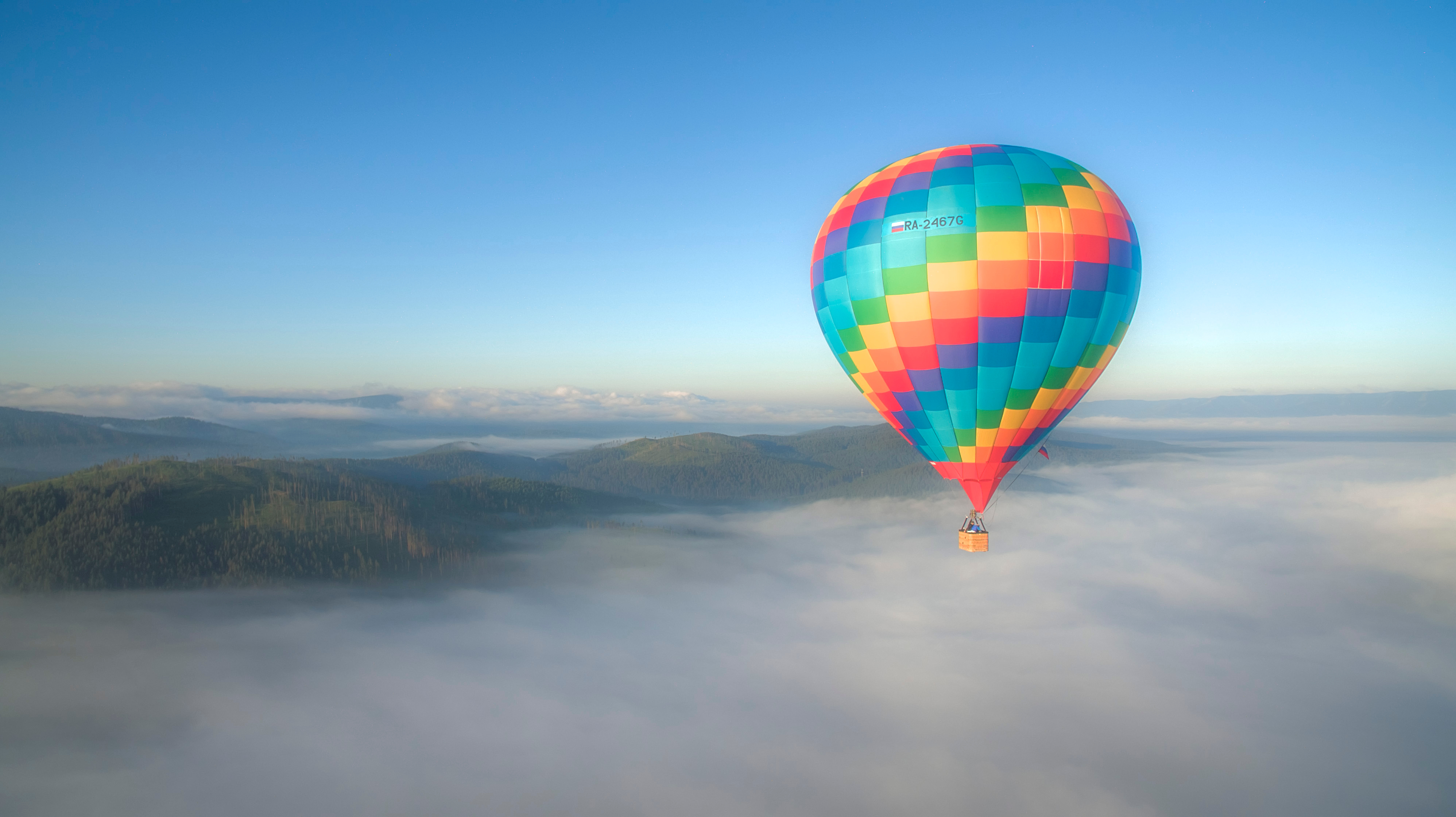 Воздушный шар. Туман. Горы