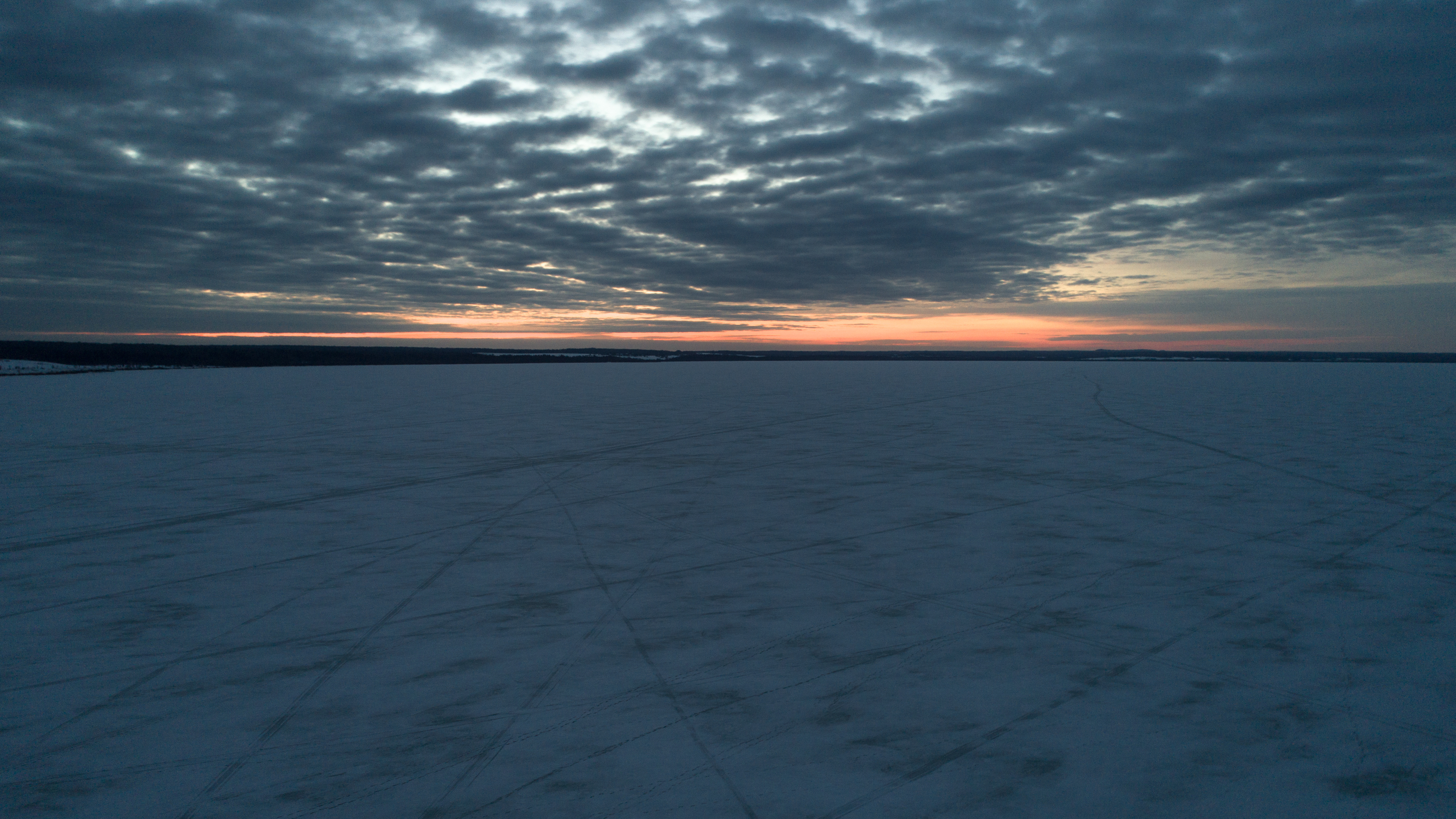 Закат над зимнем озером