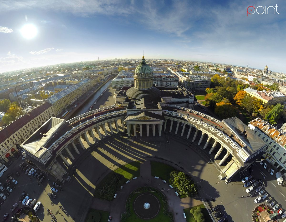 На улице зима, а у нас в аэро виртуальном туре Казанский собор под летним солнцем.