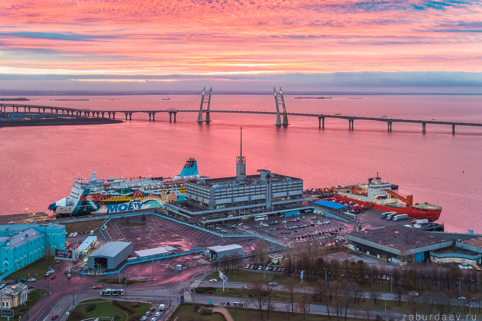 Морской вокзал, паром «Принцесса Анастасия» и научно-экспедиционное судно «Академик Трёшников»