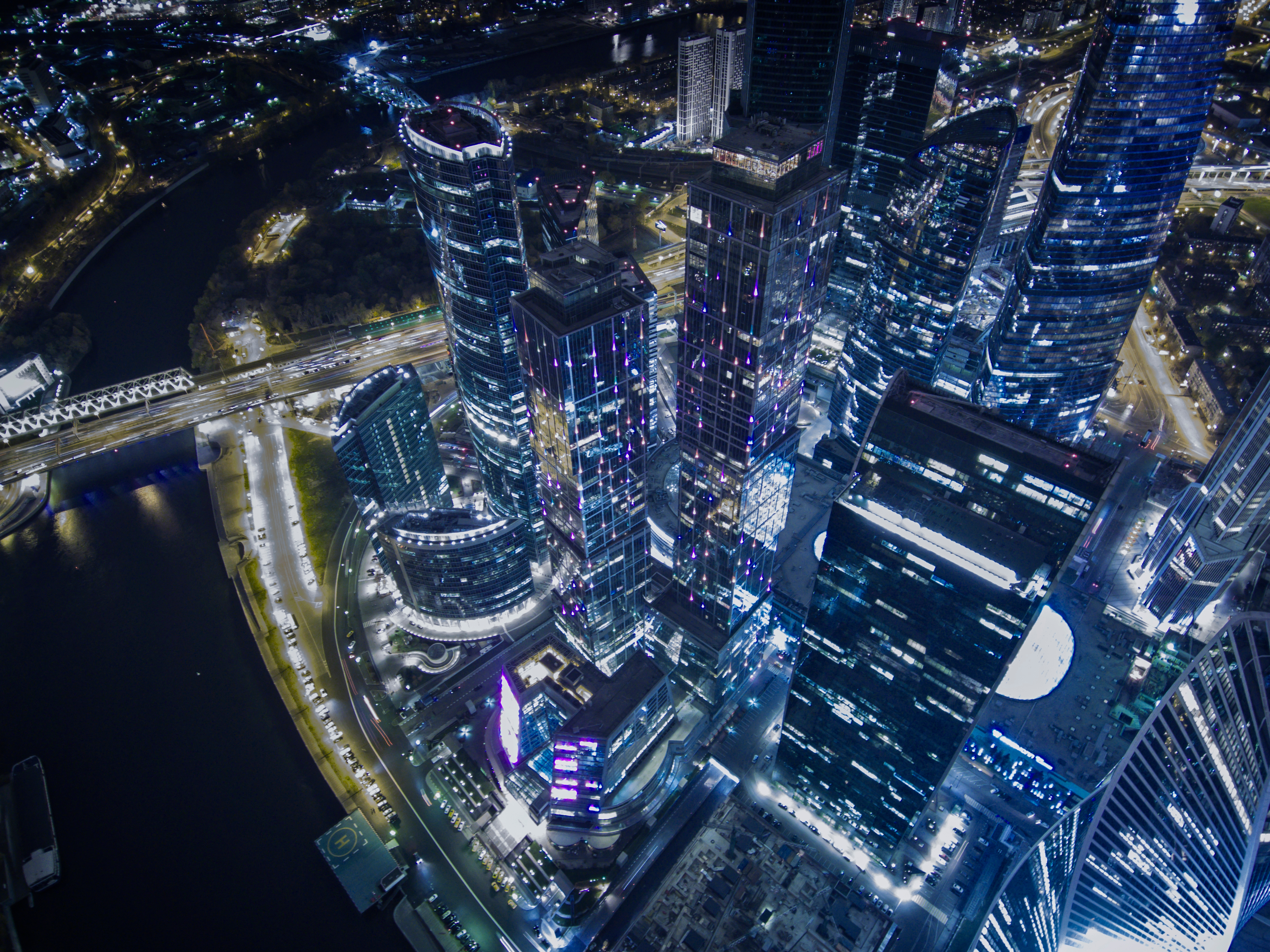Ночной вид на Москва-сити с высоты 500 метров
