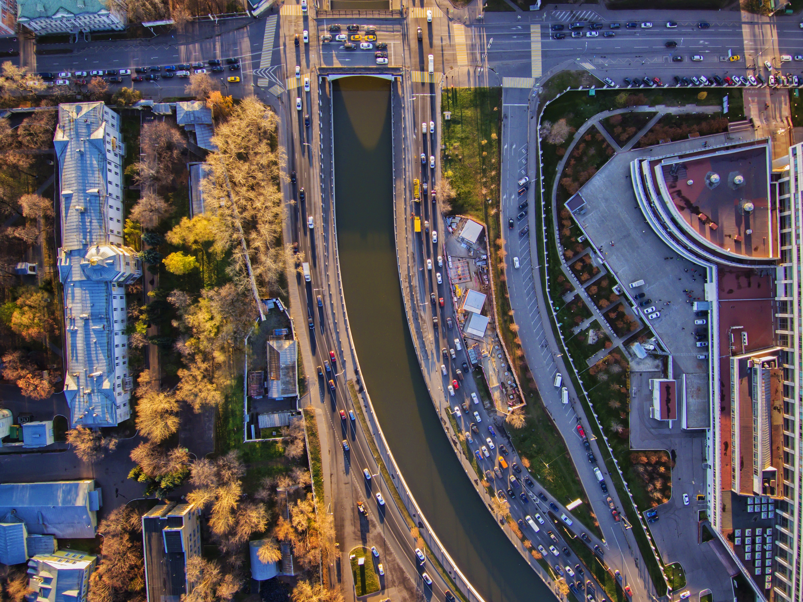 Набережная Яузы в предзакатных лучах солнца